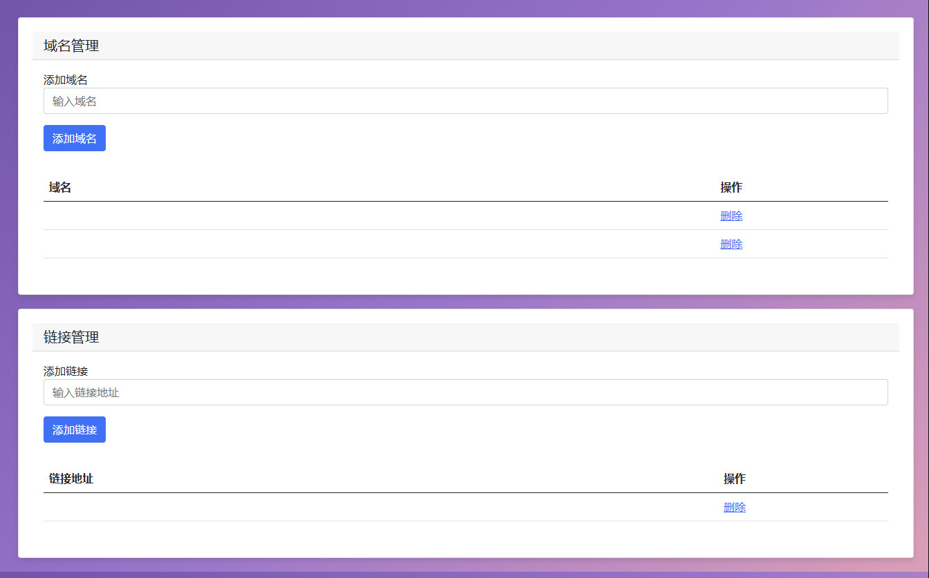 中转域名和需要跳转显示的域名在后台添加,如果是在微信推广,中转还有跳转显示的域名都不能红,红了就打不开