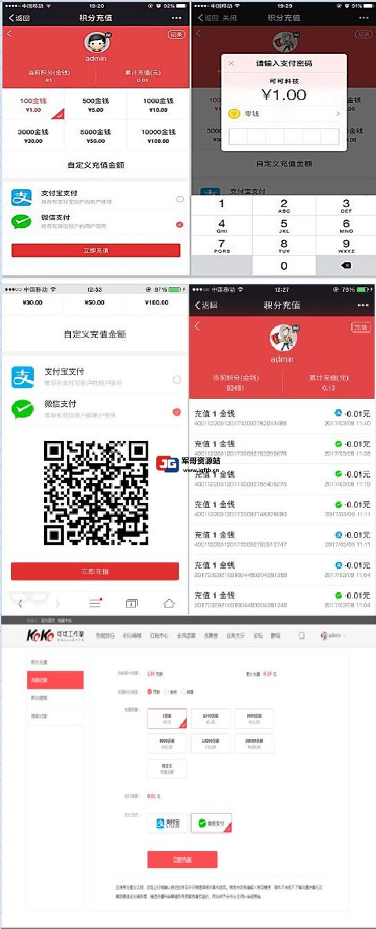 7,支持多种积分充值。