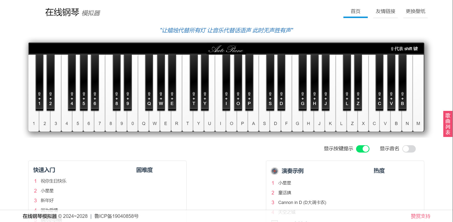 AutoPiano-在线弹钢琴网站源码,在线钢琴模拟器,自由在线弹奏虚拟钢琴,它也是所有人的绝佳音乐平台,此源码仅用于学习目的。