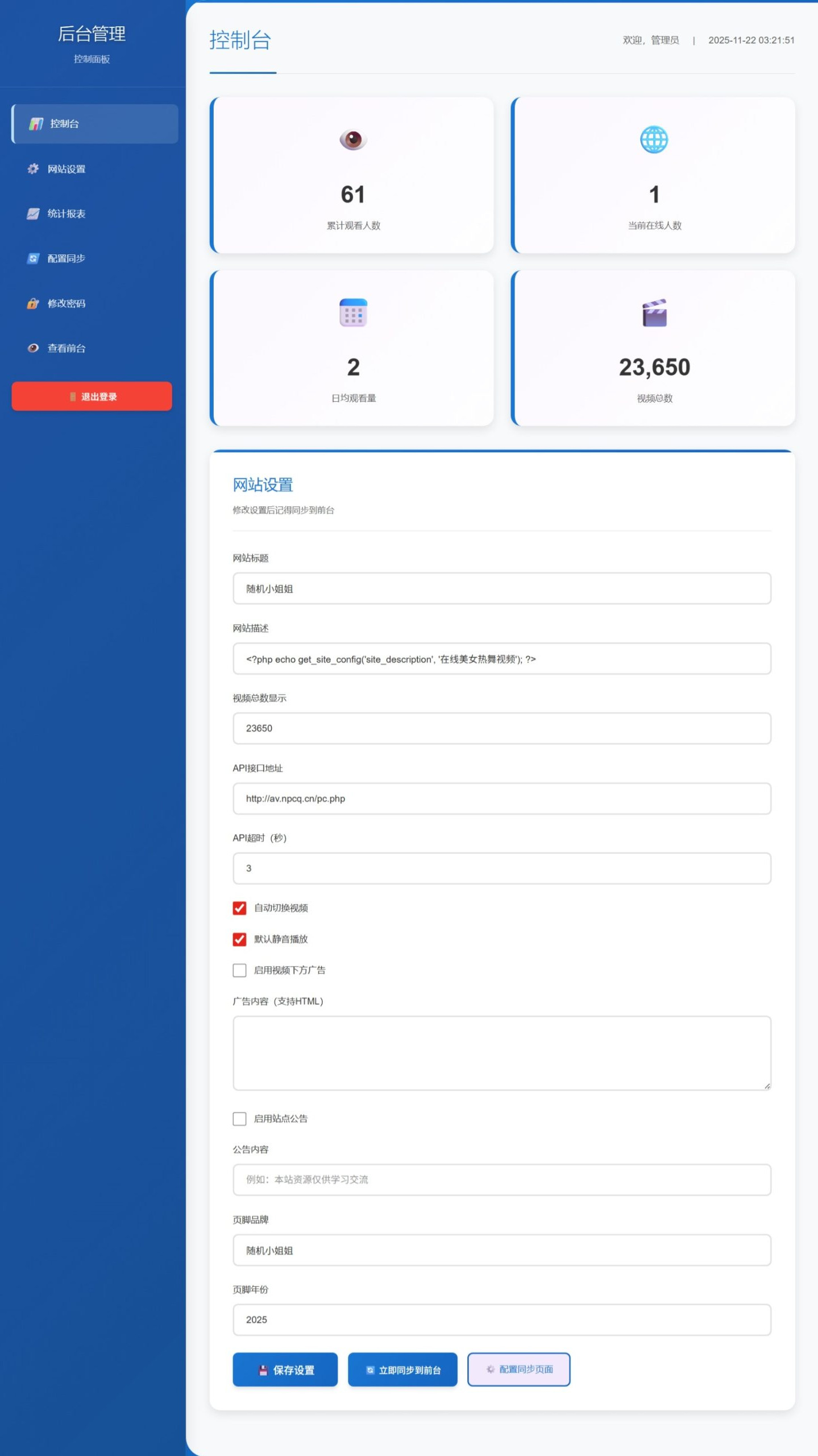 1.更新了后台功能,可以自行修改接口